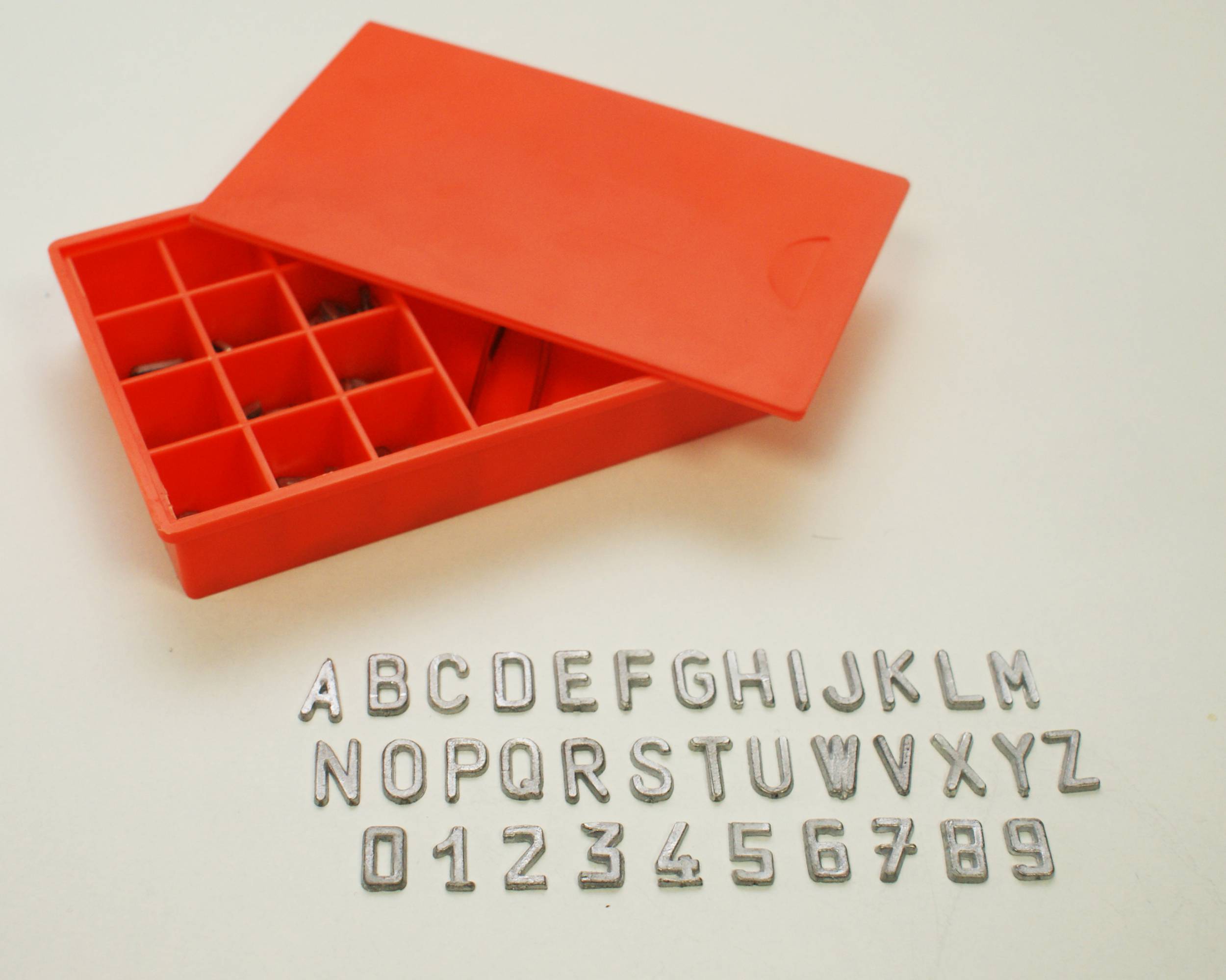 Zestaw cyfr i/lub liter (typ: CL) wykonanych z ołowiu o wysokości 12 mm Litery i cyfry dostępne są w następujących zestawach: