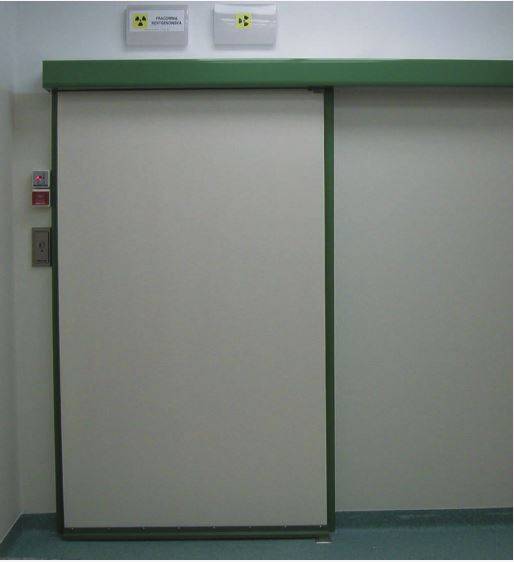 Drzwi te są montowane od wewnątrz pomieszczenia i po otwarciu zakrywają część ściany zabezpieczonej ołowiem.