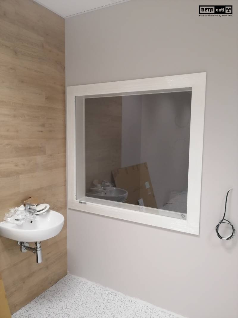 Zastosowanie odpowiedniej wielkości okna ochronnego zapewnia własciwy kąt widzenia i obserwację pomieszczenia RTG. Znajdujący się w ramie wkład ołowiu pełni funkcję łącznika pomiędzy szkłem ochronnym a ścianą zapewniając tym samy właściwą ochronność radiologiczną.